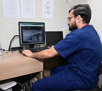 X-rays, also known as radiographs, play a crucial role in veterinary medicine for diagnosing and assessing a wide range of health conditions in pet animals. X-rays are conducted to visualize the internal structures of an animal’s body, including bones, organs, and soft tissues. They help veterinarians detect fractures, identify foreign objects, diagnose respiratory problems, investigate gastrointestinal issues, assess heart conditions, evaluate joint health and more. We at BLUE 7 VETS employ different technologies for x-ray imaging. Digital radiography is commonly used, allowing for instant image acquisition and manipulation, reducing exposure time and the need for retakes.